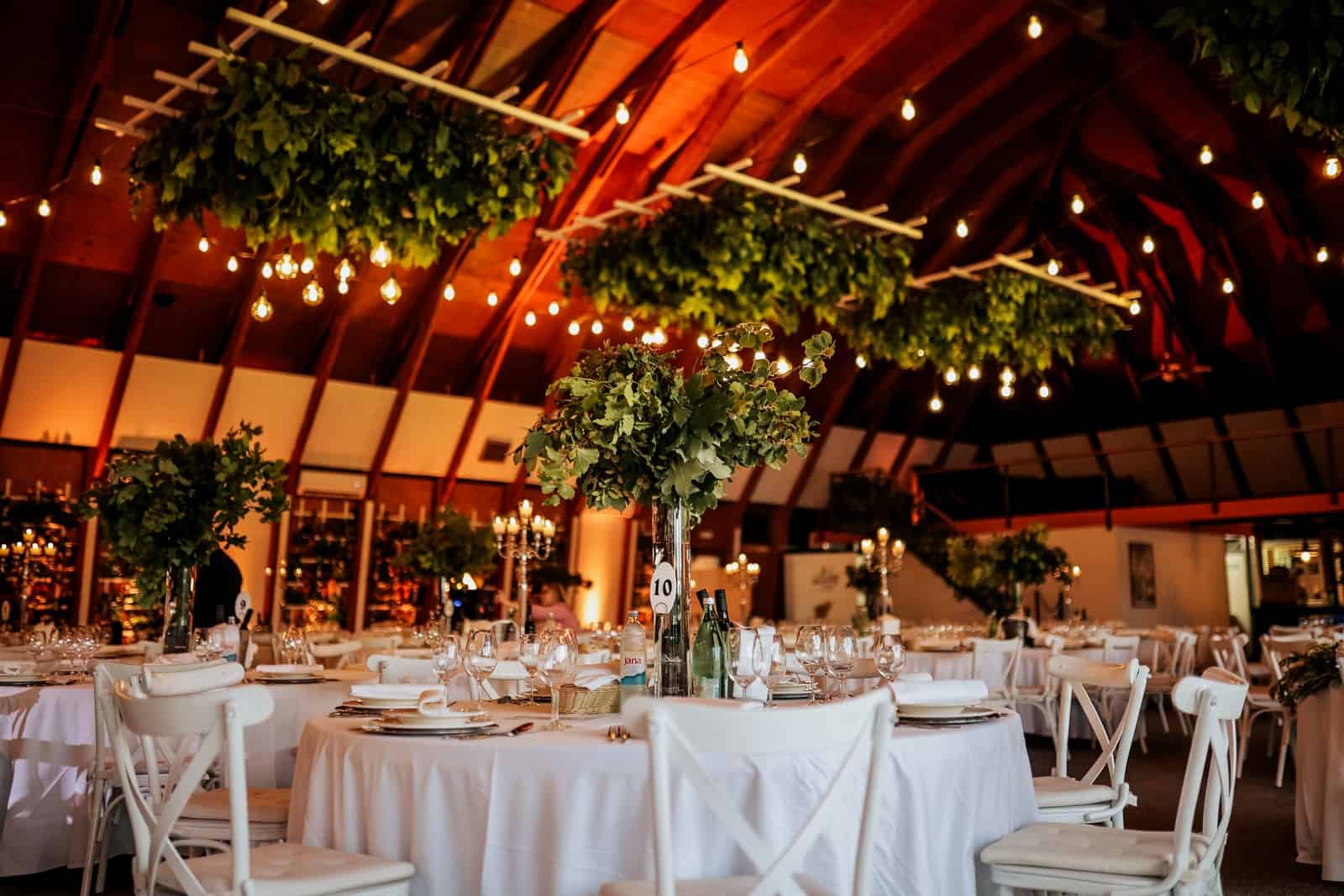 Pri ulasku u dvoranu prvo primjećujete visoki strop s autentičnim drvenim gredama iz 1996. godine. Na njima se nalazi bogati svod žaruljica koje stvaraju romantični ugođaj, a viseće konstrukcije isprepletene zelenilom koje možete prilagoditi svom stilu vjenčanja